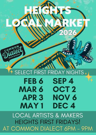 4. LOAD IN - officially begins at 4:30pm for Heights Local Market. This market is held at Common Dialect Beerworks. Market managers will not be on site prior to 4:30pm. Please be setup and ready to sell by 10 minutes before market start time. Please quickly unload your items into the lot, then go park In vendor parking. Then you may continue to setup. We will be on site in the lot to show you to your spot and answer any questions you may have about setup.